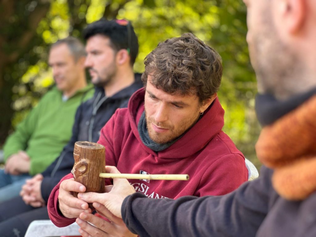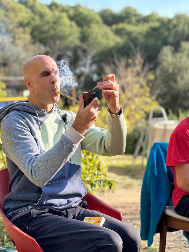 Encenent la Pipa de la Pau, amb tabac amazònic